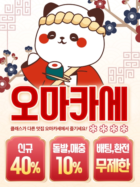 오마카세벳은 메이저 놀이터로 안전 계좌를 이용한 충전 및 환전 시스템으로 속도와 안정성을 추구하고 있습니다. 해외 API를 이용한 국내최고배당, 크로스배팅 가능, 모든 배팅에 제재가 없으며 매일 진행하는 10여가지의 이벤트까지 한번에 만나보실 수 있습니다.